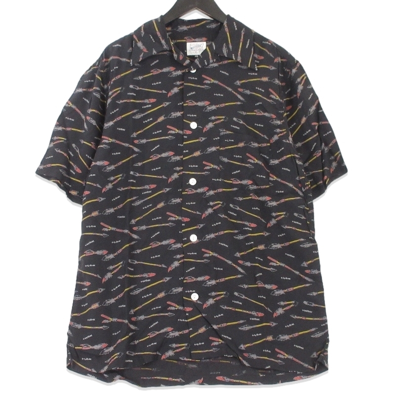 > 未使用 WESTRIDE ウエストライド 半袖シャツ TX SOUVENIR SHORT SHIRTS 総柄 オープンカラー 日本製 ブラック 黒 42 70017058