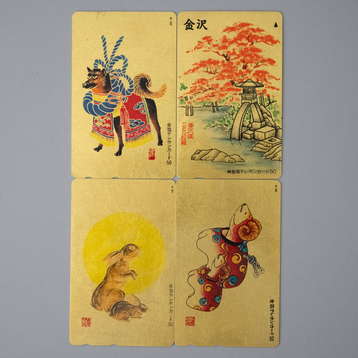 - 未使用品 4枚まとめて 純金箔テレホンカード 金箔テレホンカード テレカ 50度数 未使用 金沢 兼六園