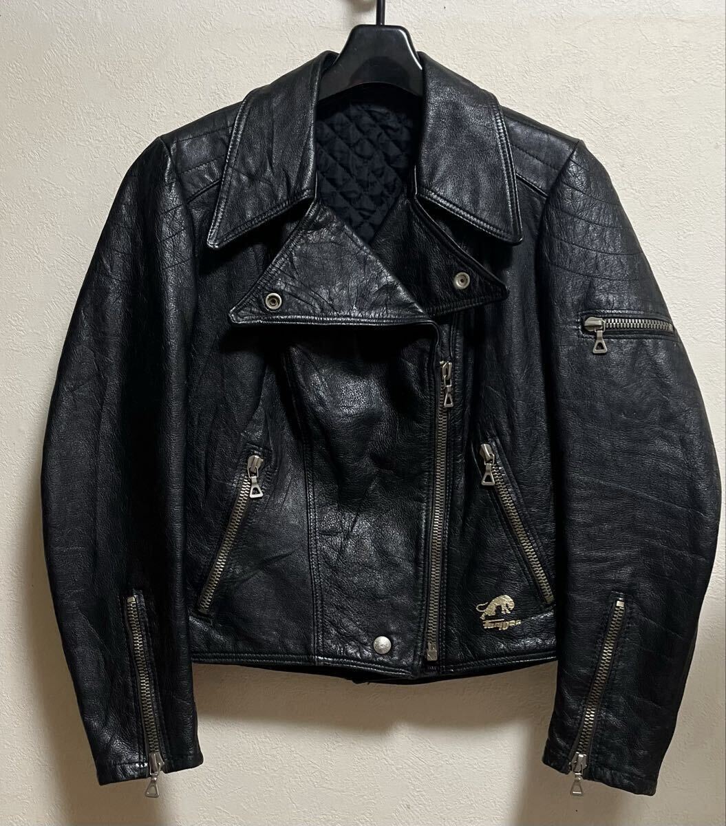 > 70s Furygan ライダースジャケット 40 レディース 黒 フランス製 ユーロ ダブル レザー ロンジャン パンク バイカー ヴィンテージ 666