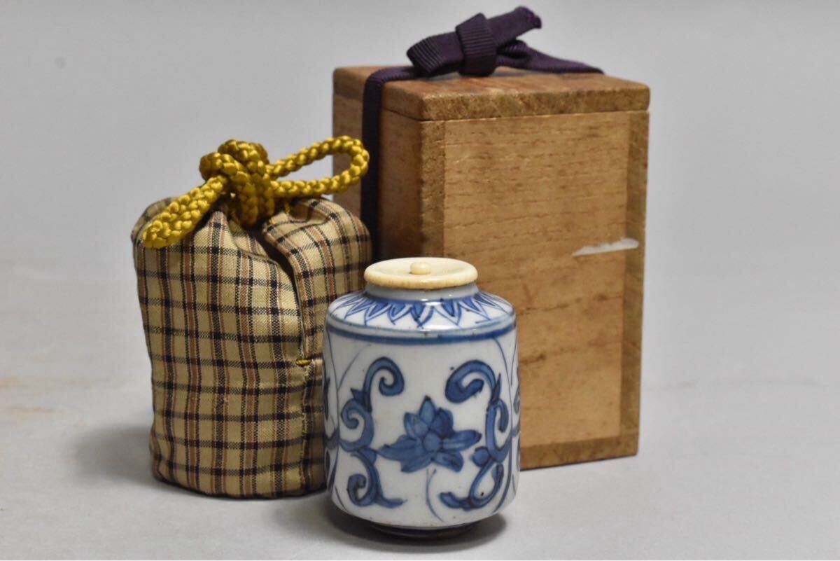 - 【英】A780 時代 染付茶入 中国美術 朝鮮 韓国 茶道具 茶器 青花 骨董品 美術品 古美術 時代品
