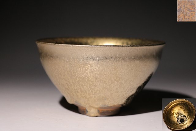 > ☆撫子☆油滴天目茶碗 供御 直径約12.7cm (検)黄金天目茶碗 茶道具 茶器 唐物 中国美術 古玩 古美術 骨董品