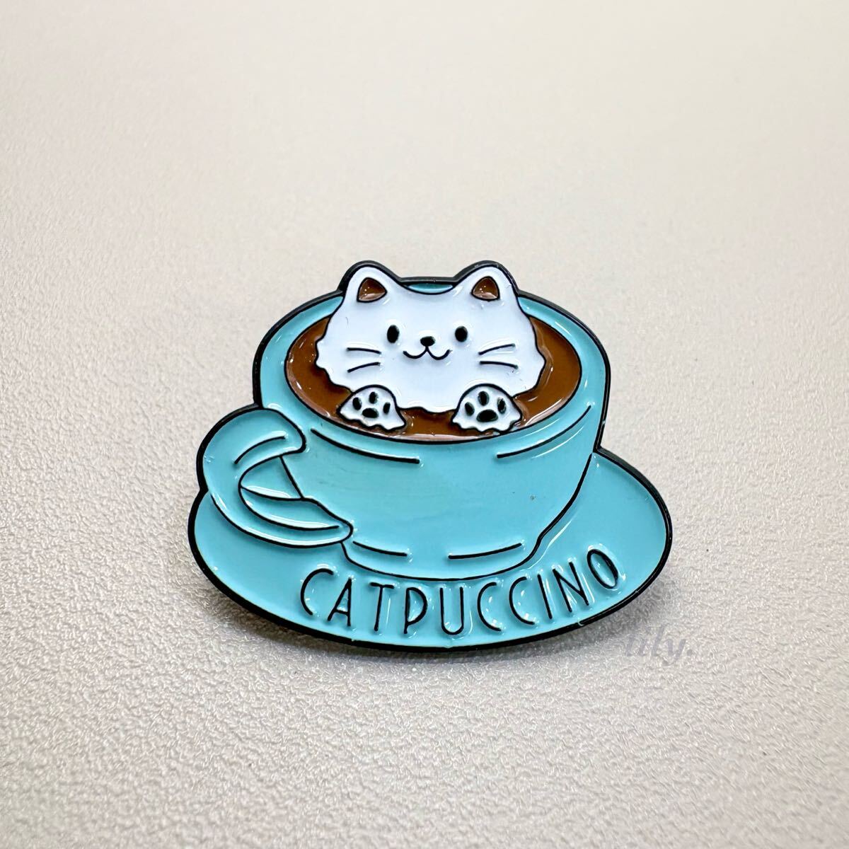 - 【ピンバッジ】白猫さんとコーヒー CATPUCCINO