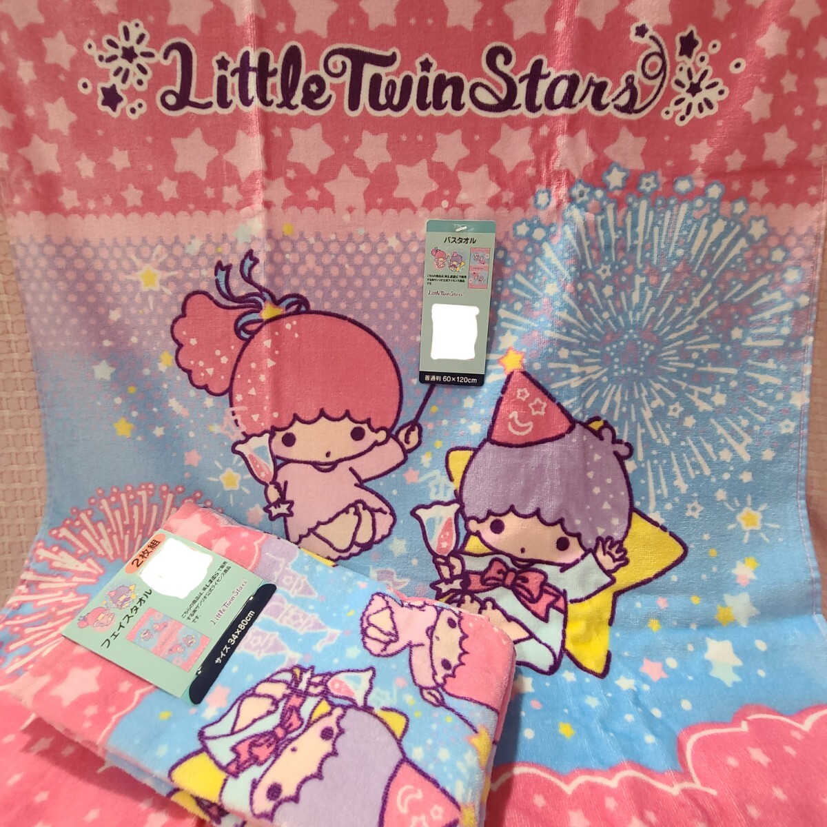 - 【サンリオ】キキララ 花火 バスタオル フェイスタオル セット リトルツインスターズ しまむら 1H8371KR710