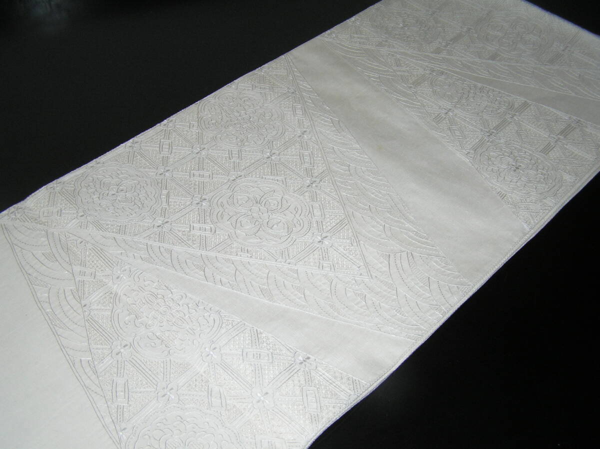> どんぶらこ★繊細で美しい紬地に汕頭刺繍の袋帯★スワトウ★着物に合いやすいオフホワイト★未使用★
