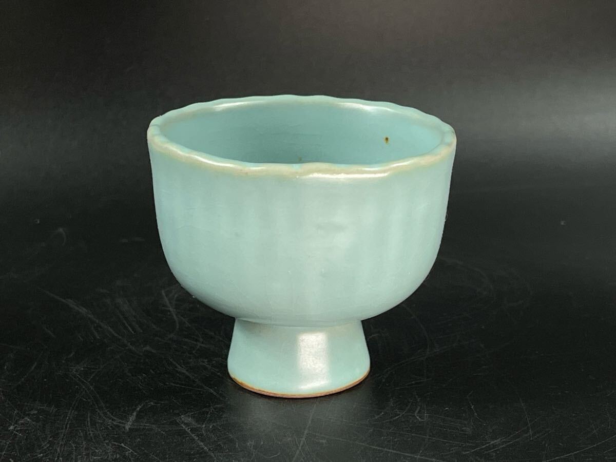- 唐物 高足茶碗 青磁 汝窯 盃 茶道具 骨董 古玩 古美術 【博圓】径6.7cm