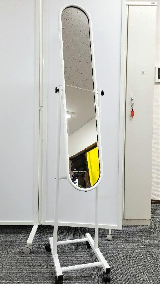 - キャスター付き スリム姿見ミラー スタンドミラー(ホワイト)