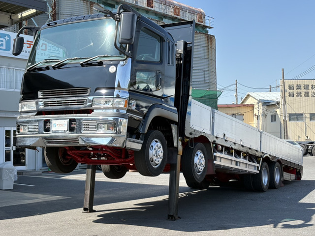 > 【諸費用コミ】:平成14年 三菱ふそう スーパーグレートハイジャッキセルフ ウインチ 床素材:木スタンション2対 アオリロ