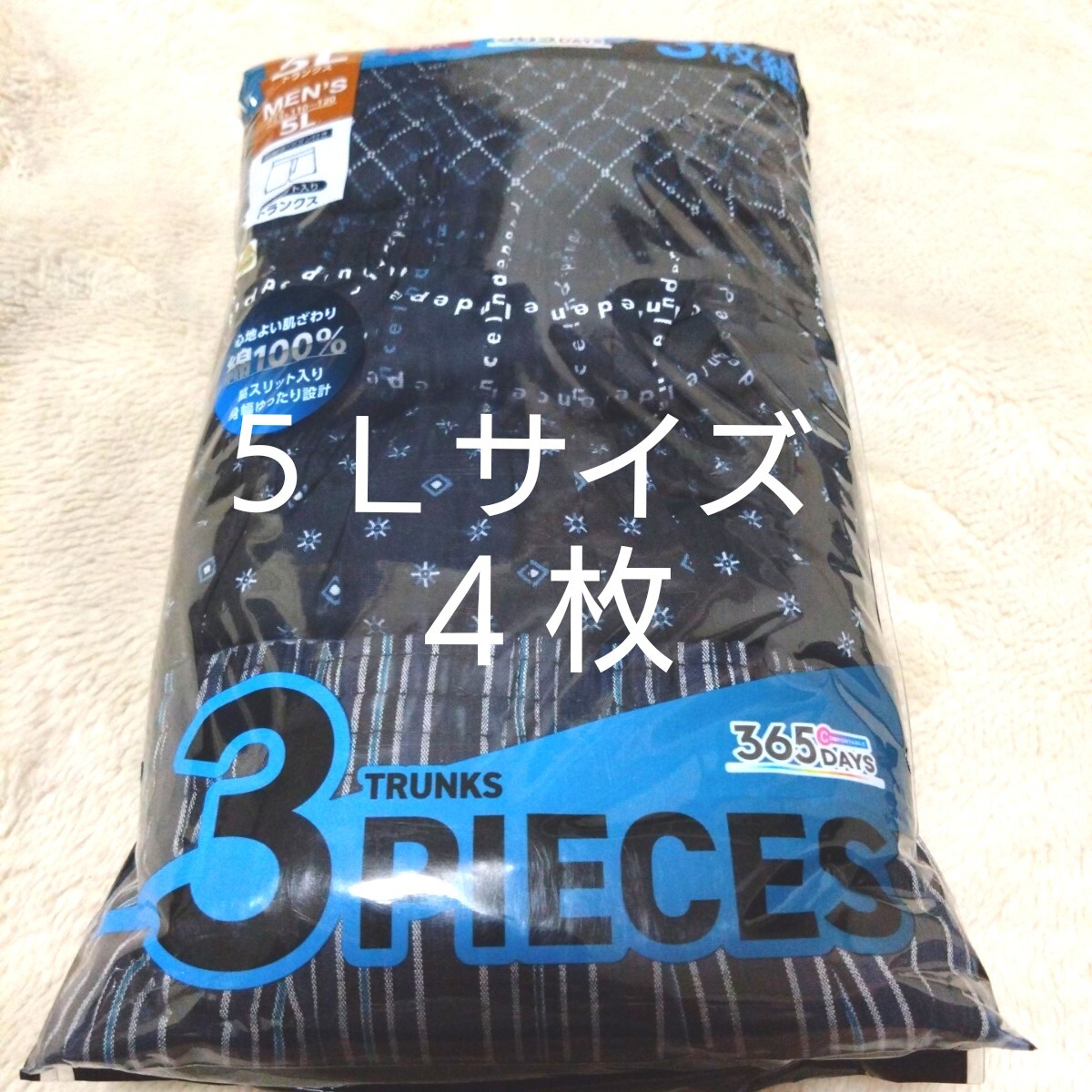 - ①メンズ 紳士 トランクス 5Lサイズ 4枚組1セット4枚 サイズ5L 綿100% 脇スリット入