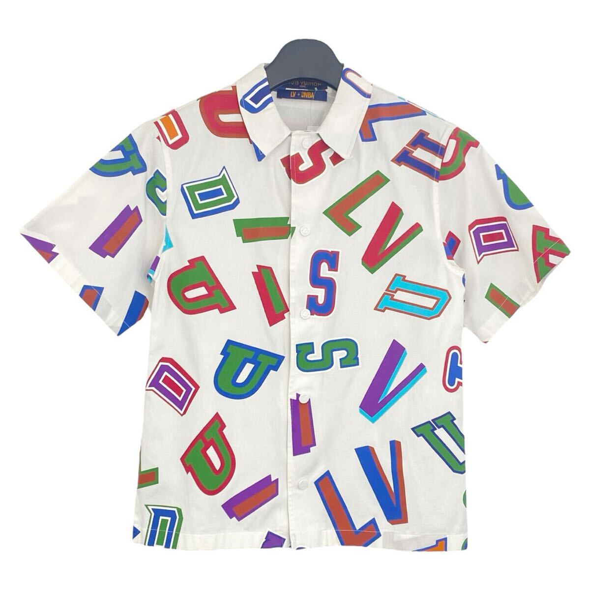 > 極美品 LOUIS VUITTON ルイ・ヴィトン シャツ ロゴ 総柄 半袖 ホワイト メンズ AH5-2 1004-8