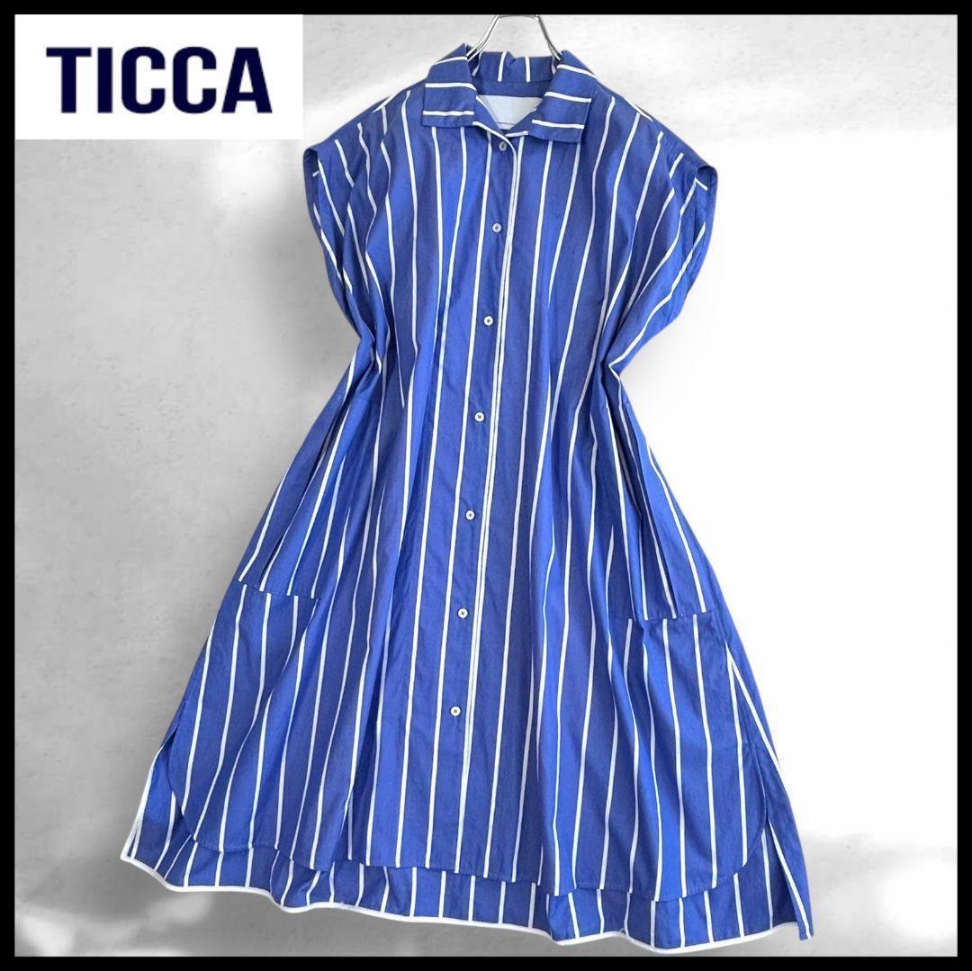 - 【大人気】TICCA ティッカ シャツワンピース ブルー ストライプ 美品 希少 ワンピース 大人気モデル Lサイズ相当