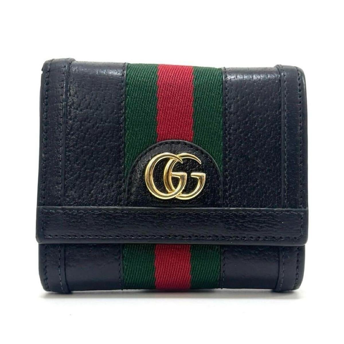 - グッチ 二つ折り財布 コンパクトウォレット シェリーライン GGマーモント ブラック 黒 ゴールド グリーン レッド レザー 革 フラップ GUCCI