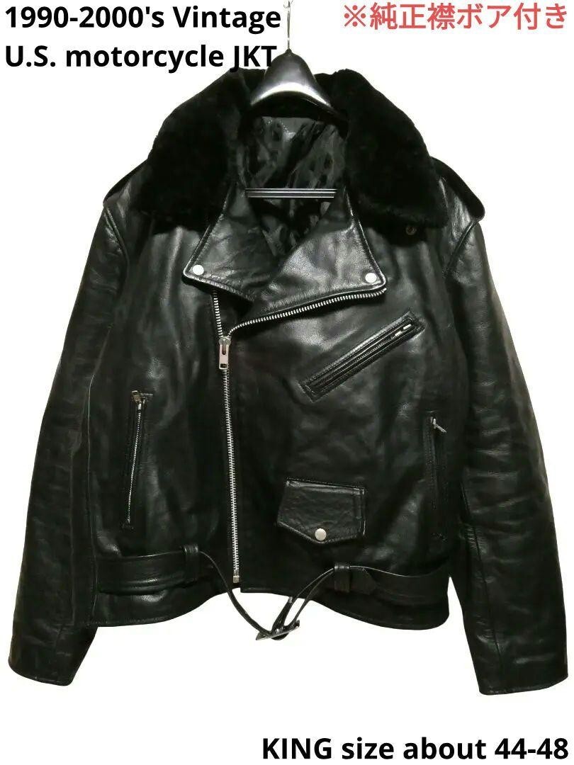 - 激レア!美品!1990-00'sヴィンテージ!襟ボア付き完品!ウルトラキングサイズ44-48相当!アメリカンダブルライダース618型ブラック黒