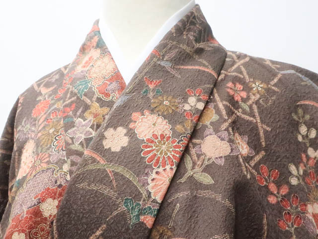 > 《京都一輝堂》【着物】小紋 金彩 籠目に古典花文 身丈約165.5cm 裄丈約63cm 25z03-1273
