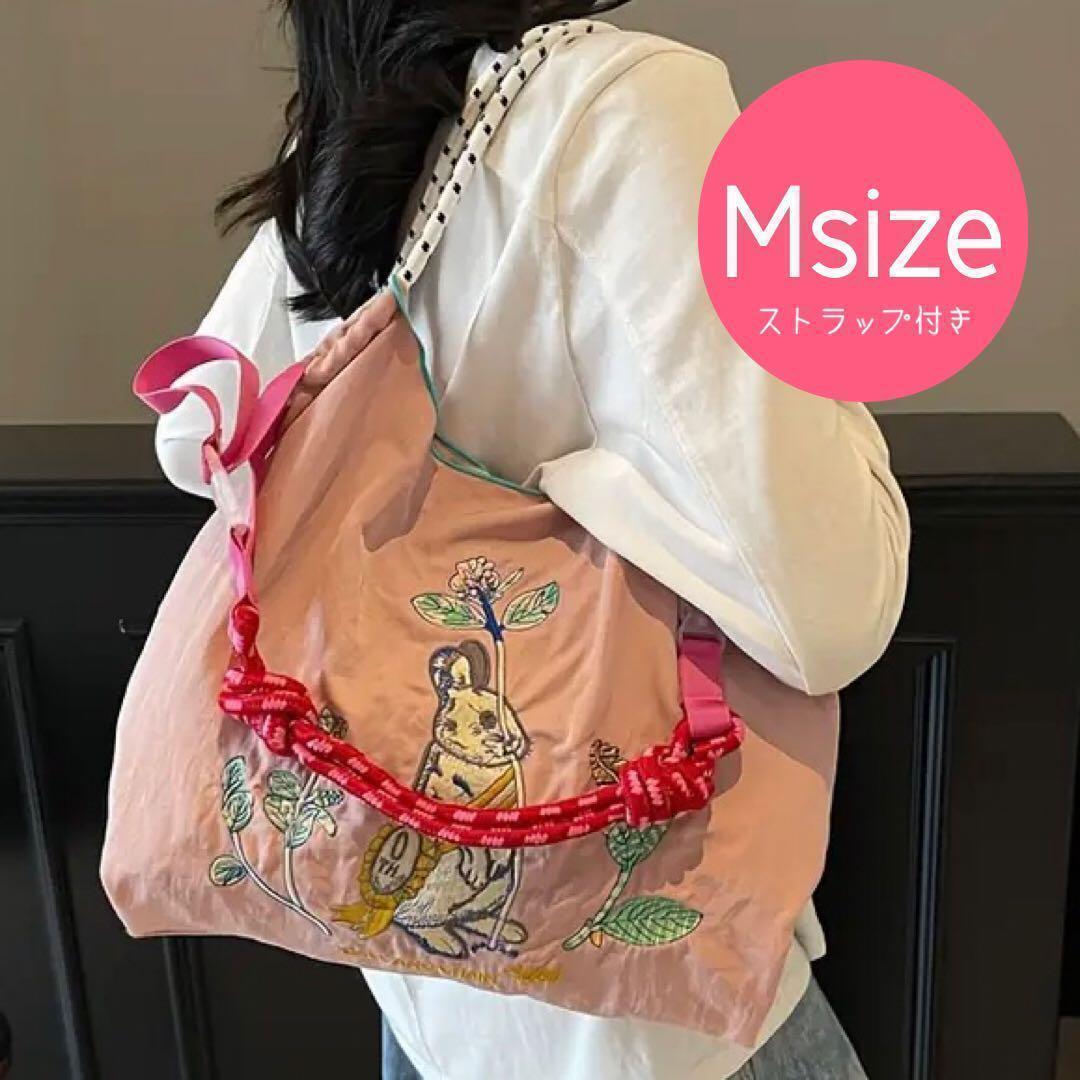 - 最終価格 刺繍 ナイロン M ショルダーバッグ エコバッグマザーズバッグ うさぎ