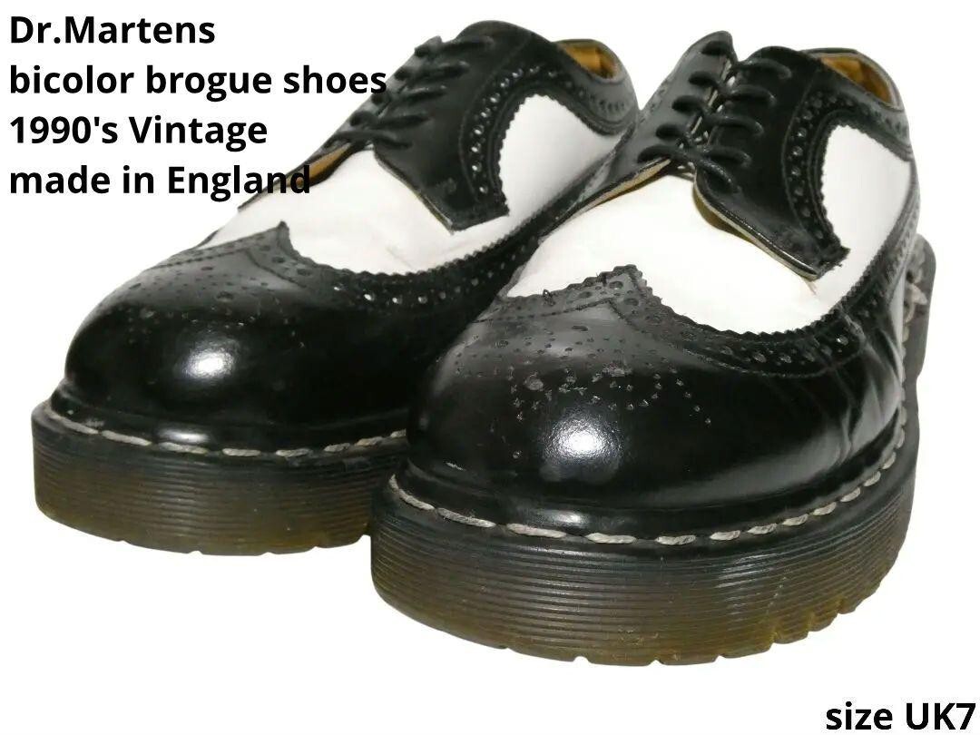 > 厚底!英国製!黄金サイズUK7!ドクターマーチンウイングチップシューズクレイジーボムツートンバイカラーイングランドヴィンテージ