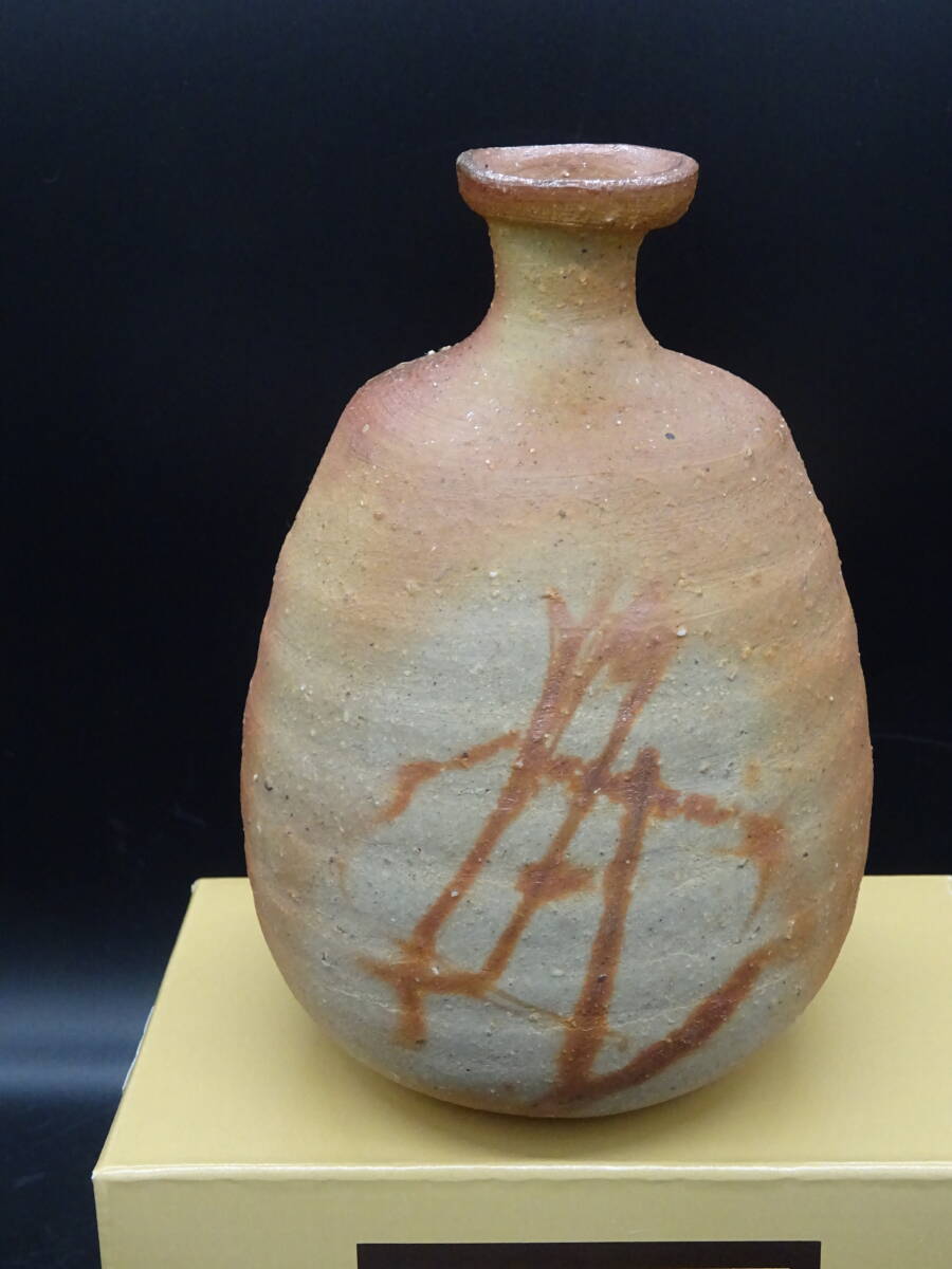- 備前焼 人気実力作家 澁田寿昭(師:伝統工芸士鷹取関山、受賞歴多数)★備前緋襷徳利 紙箱、陶歴付 酒器 茶碗 壺 茶道具
