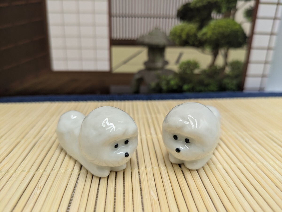 - 陶器製 箸置き 2個セット 犬 ビションフリーゼ 置物 かわいい犬の箸置き