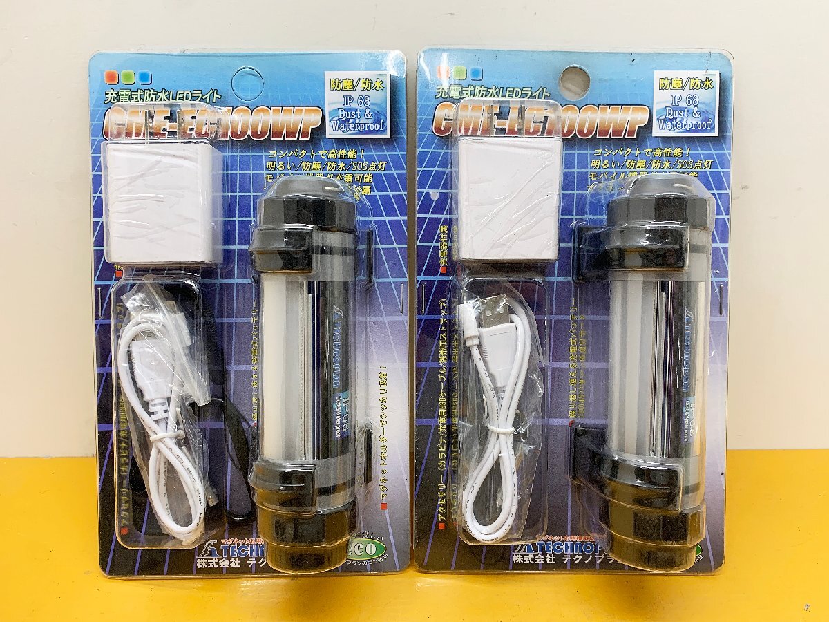 - ★新品★2個セット テクノプラン 充電式防水LEDライト CME-EC100WP 明るさ100lm 最大60時間点灯 USB充電 非常用や災害時に)倉b