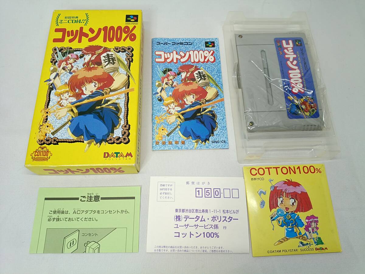 > スーパーファミコン コットン100% ミニCD・説明書・ハガキ・箱付き SFC 動作確認済 全国送料無料