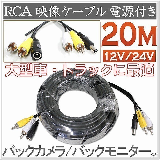 - RCA映像ケーブル 20m 延長ケーブル 電源付 大型車 12V/24V