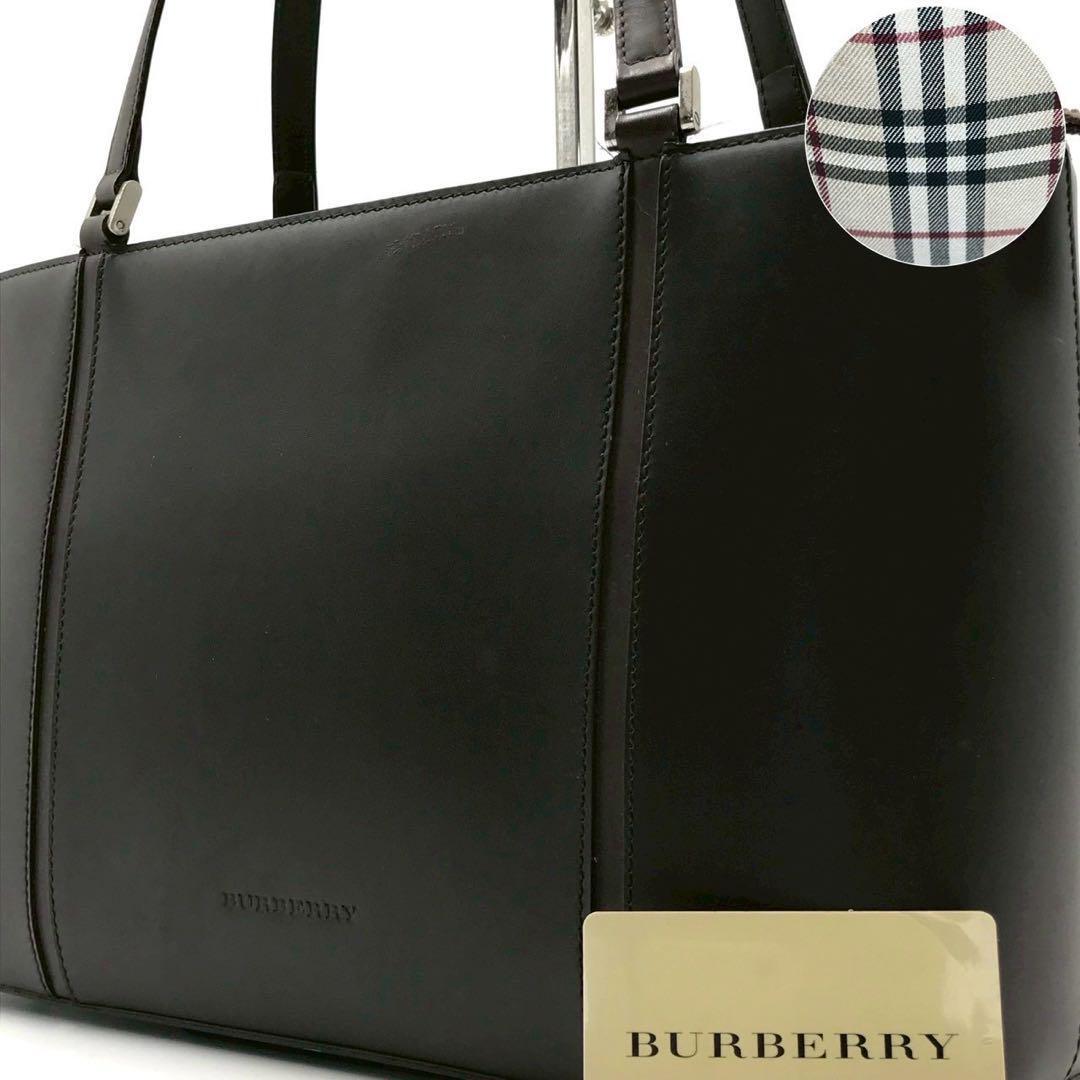 > 定価13万●バーバリー BURBERRY メンズ ビジネス A4収納可能 トートバッグ ハンドバック ノバチェック レザー ブラウン 肩掛け