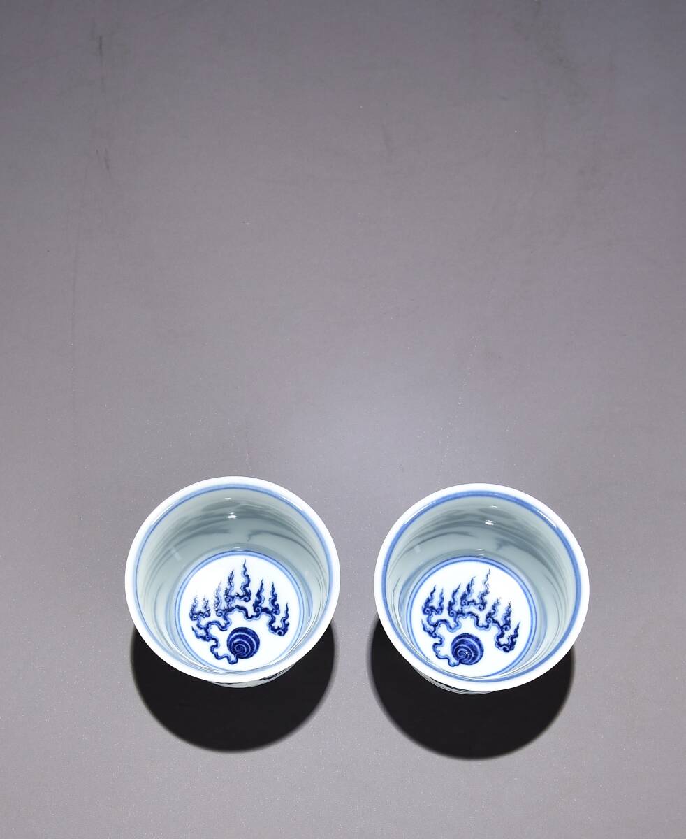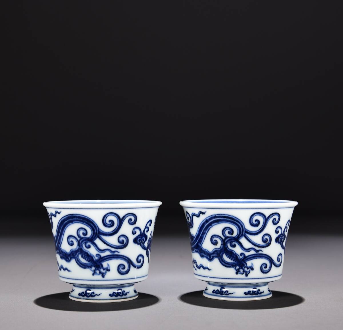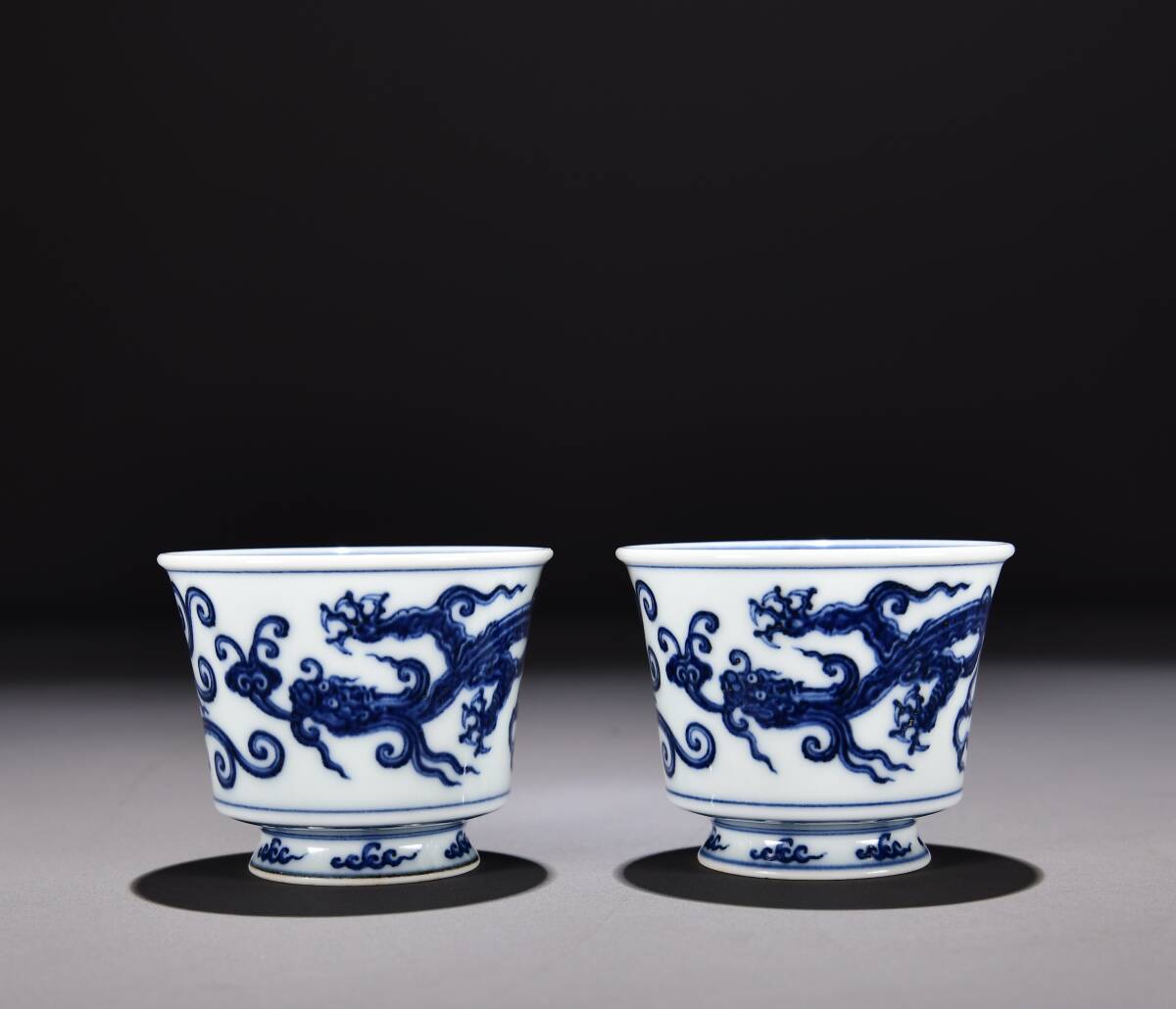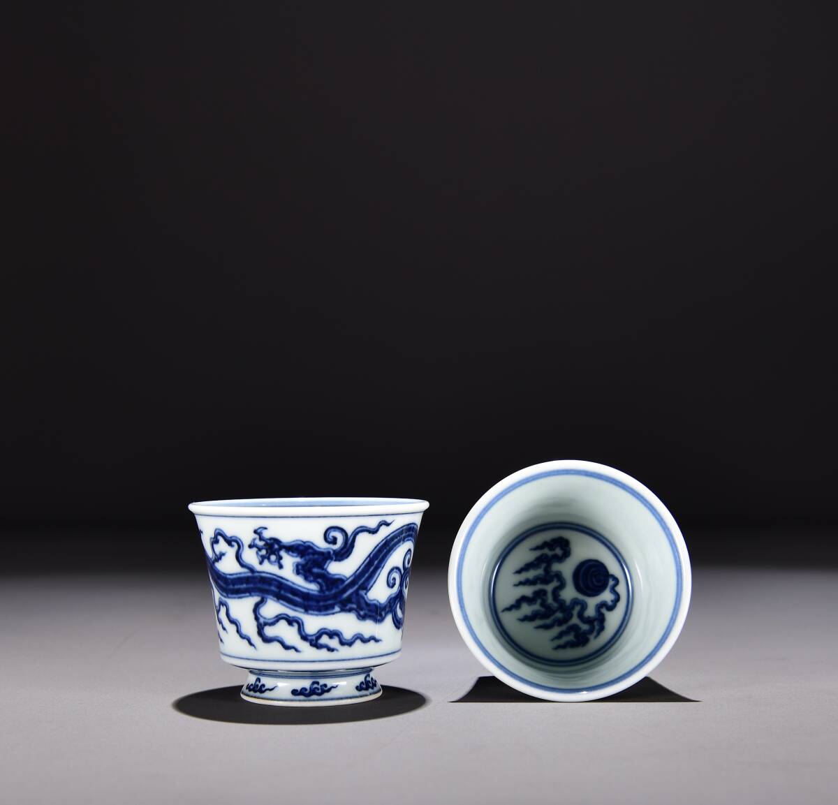 - 【超珍館蔵】明 宣德年制款 古陶瓷品 青花 龍銜靈芝紋 供杯 陶藝 古賞物 古董品 古美術品 時代物 旧家蔵出 稀少珍蔵品