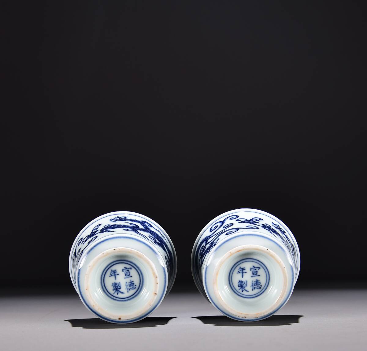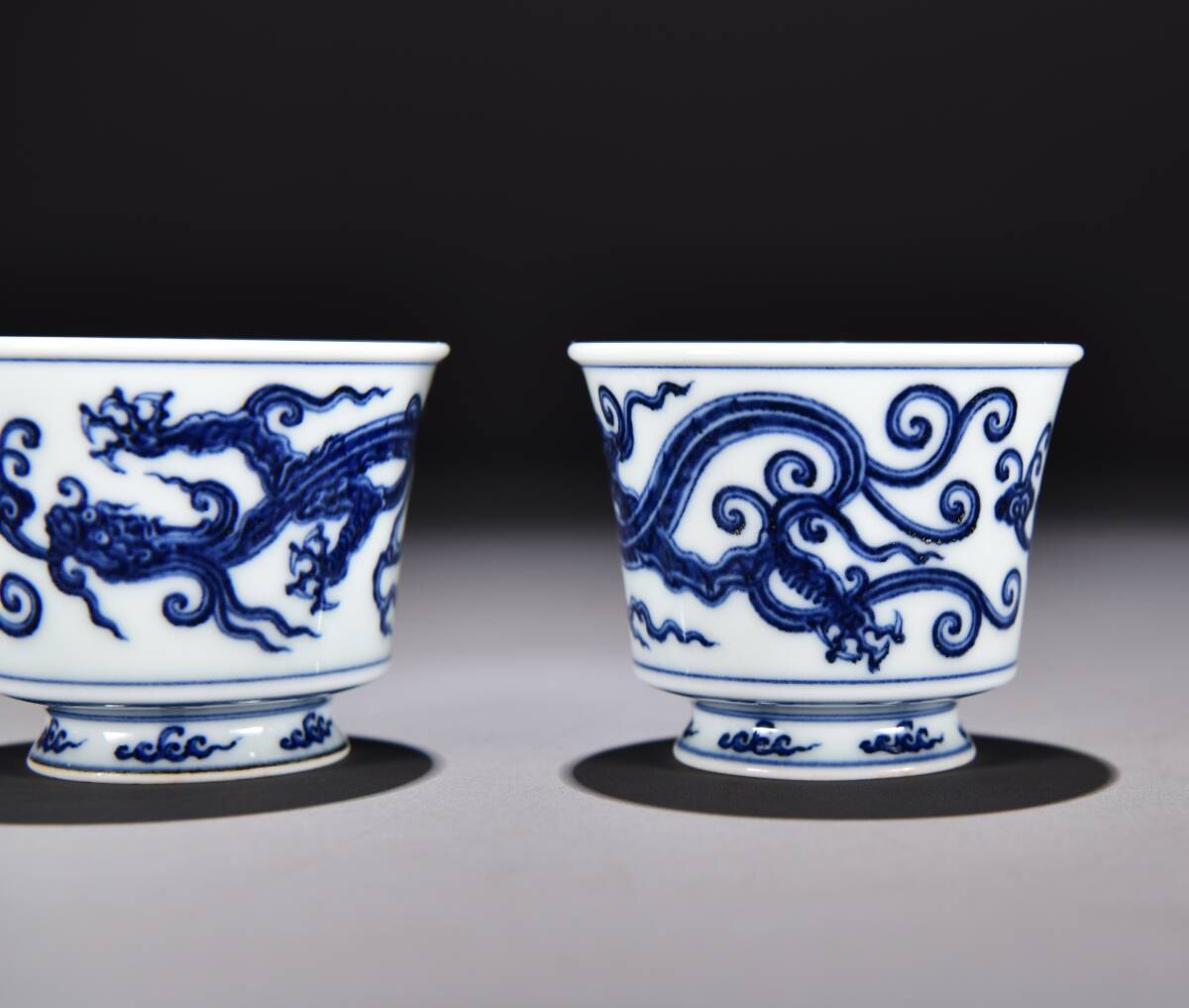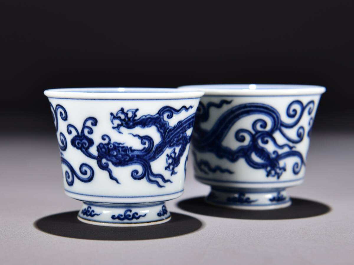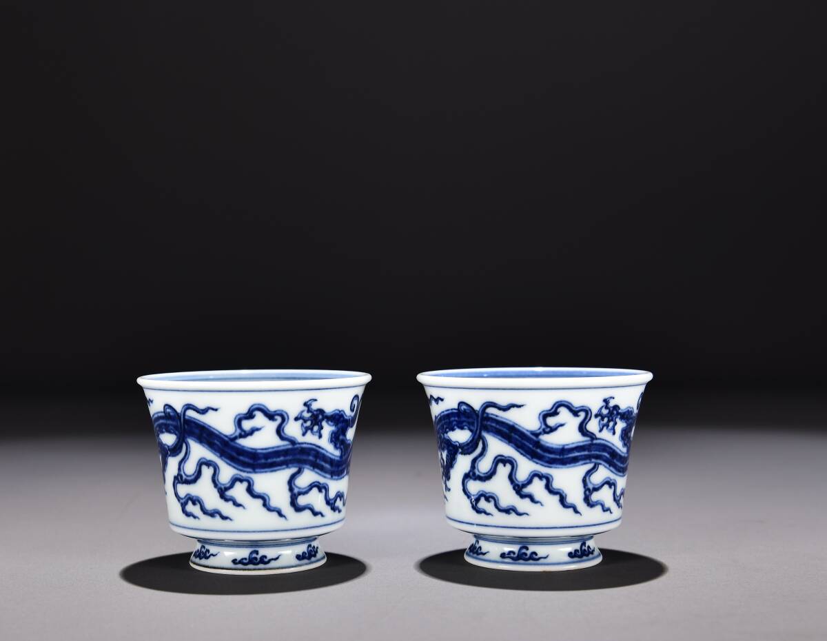 - 【超珍館蔵】明 宣德年制款 古陶瓷品 青花 龍銜靈芝紋 供杯 陶藝 古賞物 古董品 古美術品 時代物 旧家蔵出 稀少珍蔵品