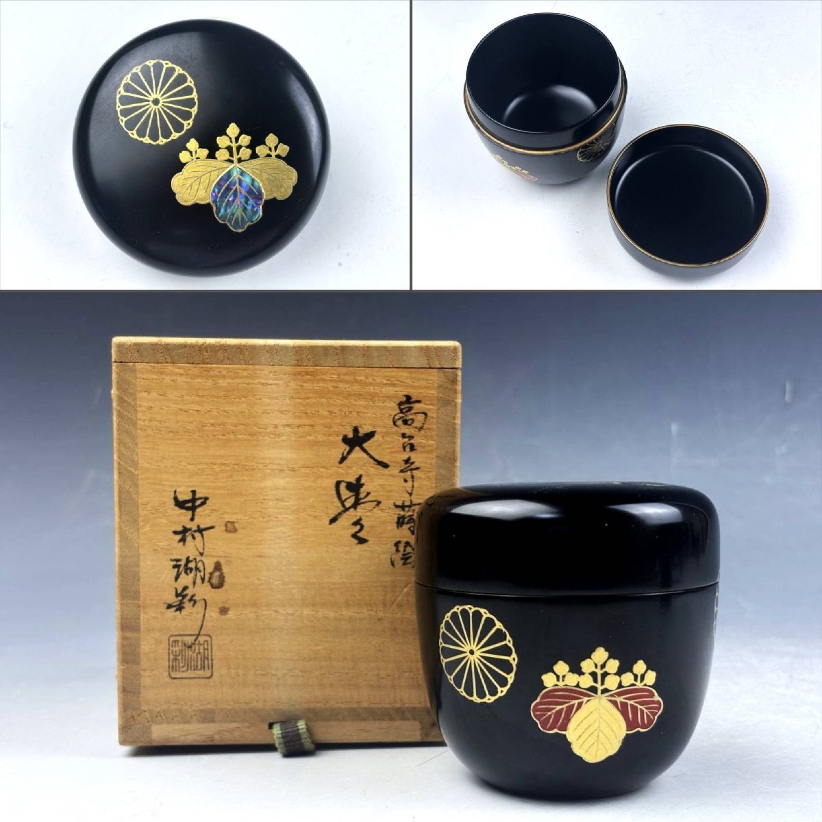 > 山中塗 蒔絵師 中村湖彩 青貝入 菊桐文 高台寺蒔絵 大棗 薄茶入 無傷 共箱 茶器 茶道具 時代物 木製漆器 古美術骨董品 XSI209【遅日亭】