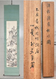 - 7◆初荷です ◆掛軸 白須心華 淡彩漁家秋水図 真作 紙本 ◆共箱 展観札付 師は甲斐虎山