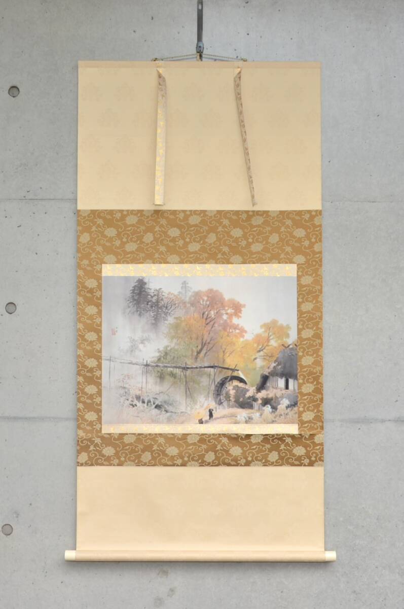 - 3◆初荷です ◆掛軸 川合玉堂 「彩雨」 真作 印刷 絹本 ◆共箱 あずま工芸(株) 13/50 横物