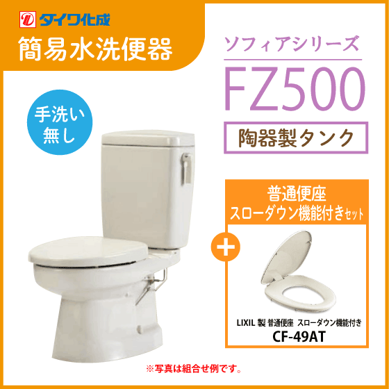 > 簡易水洗便器 簡易水洗トイレ 「ソフィアシリーズ」 FZ500-N00(手洗なし)・スローダウン機能付普通便座セット ダイワ化成