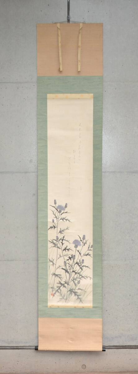 - 40◆初荷です ◆掛軸 洋画家 石井柏亭 歌人 与謝野晶子 合作 「あざみぐさ」 真作 紙本 ◆保存箱