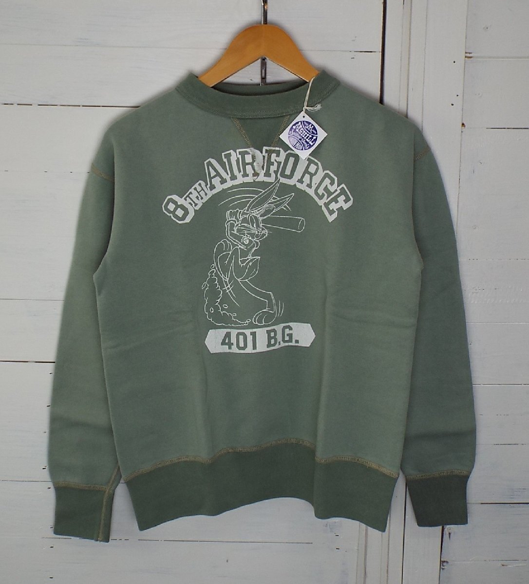 - T4166〇TOYS McCOY/トイズマッコイ McHLL マックヒル 401BG バックスバニー 8TH AIRFORCE スウェットトレーナー TMC7712/カーキ/L タグ付
