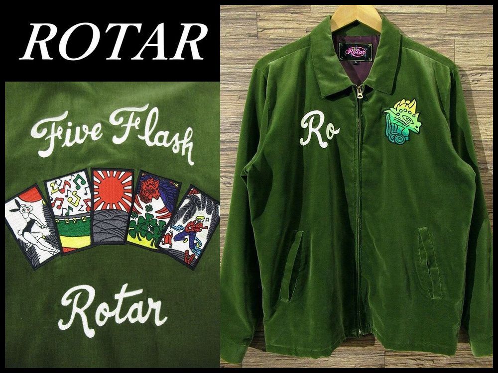 > 送料無料 ROTAR ローター Five Flash Souvenir Jacket ベロア 花札 刺繍 スーベニア ジャケット スカジャン ベトジャン ギガジャン 緑 L