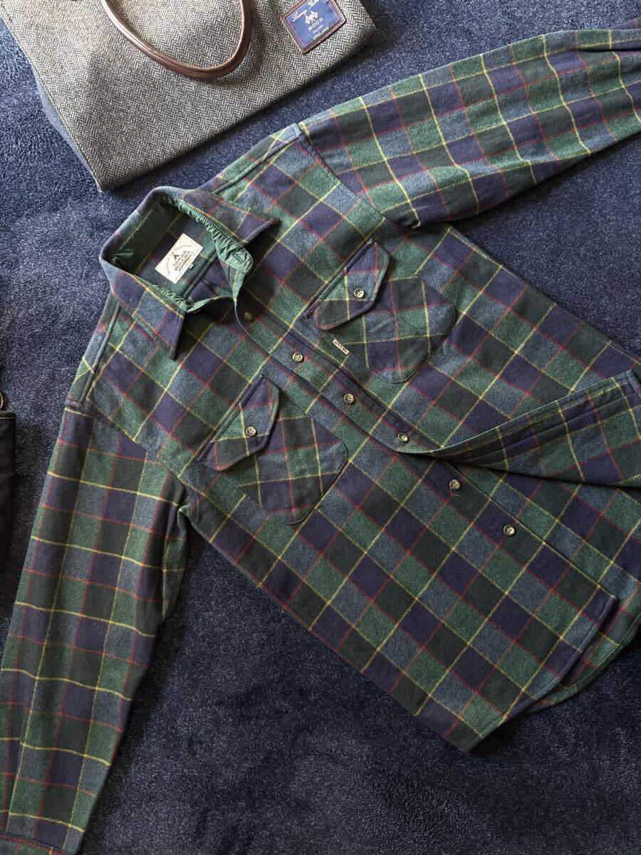 - 日本製 超美品 定価14,080円 TARAS BOULBA タラスブルバ ウール90%/ナイロン10% チェック柄 トレッキング 長袖シャツ sizeM アシックス