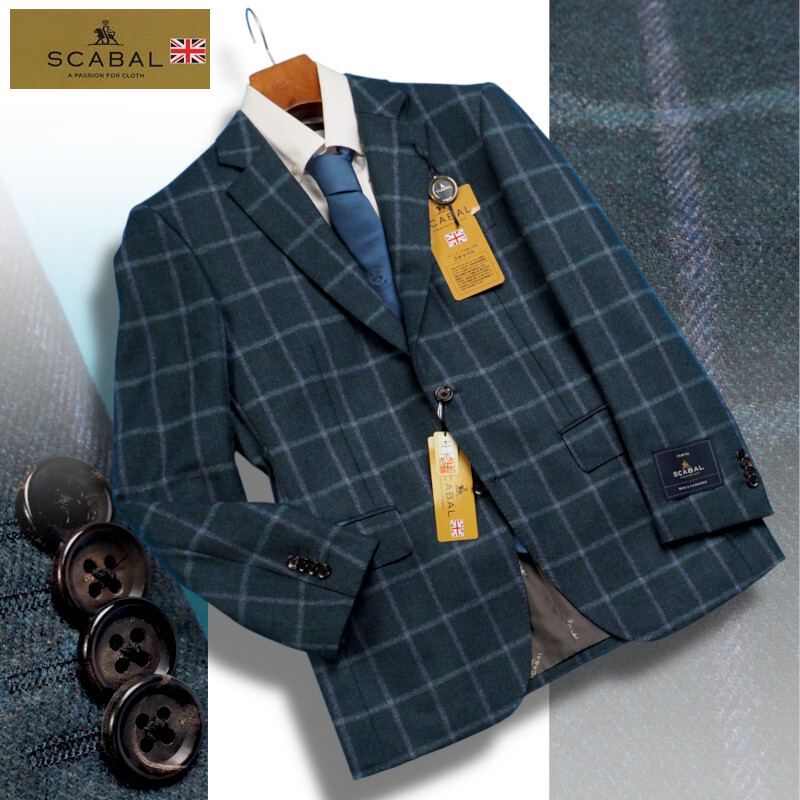 > 新品14.3万円 大手百貨店扱い 秋冬 日本製『Scabal スキャバル 英国製生地』カシミヤ混ウール フランネル ジャケットBB8緑(I) 3251490