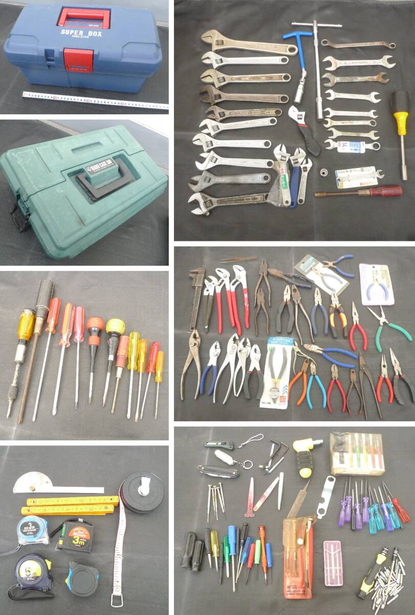 - n5456○中古 工具+ツールボックス まとめ ジャンク◇レンチ モンキーレンチ スパナ ニッパー ペンチ プライヤー ドライバー レンチ 工具箱