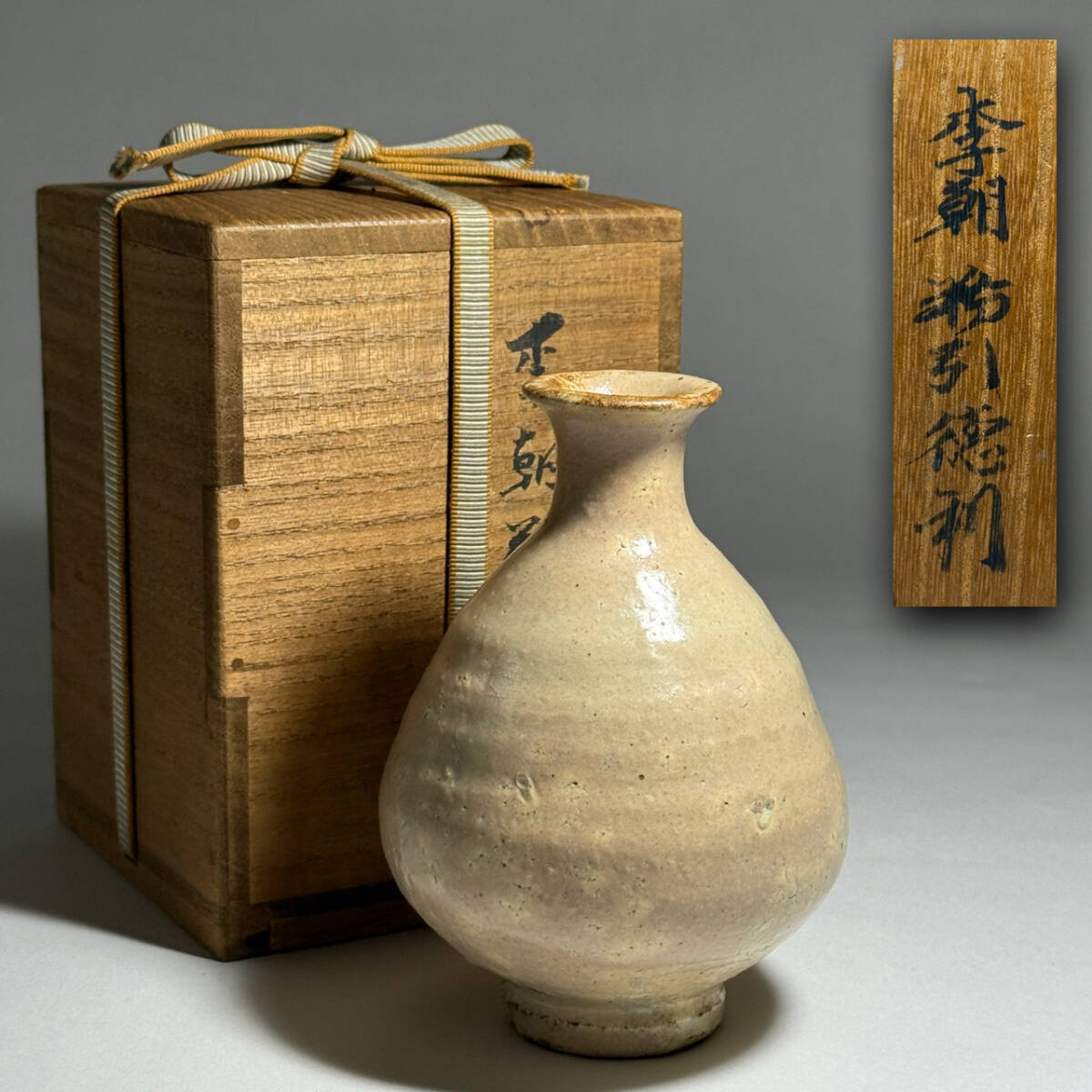 > 【茂蔵】朝鮮古陶磁蒐集家旧蔵品 李朝粉引徳利 雨漏り 竹節高台 李朝時代前期 朝鮮古陶磁 朝鮮美術【検:高麗茶碗 大井戸 堅手 刷毛目】