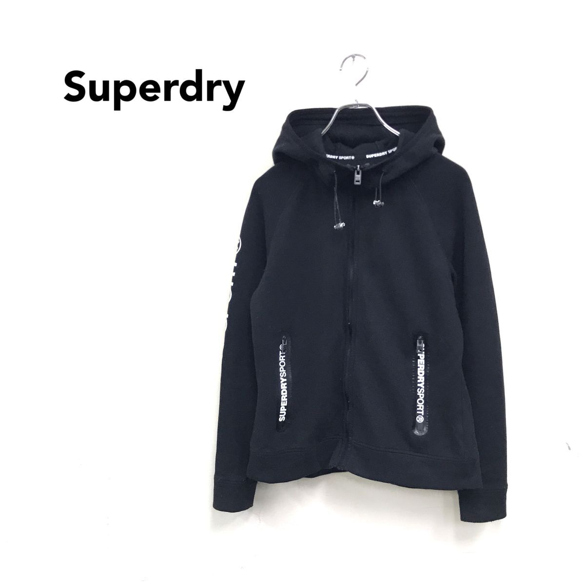 > 2O1218-Y◆Superdry スーパードライ 極度乾燥しなさい フルジップパーカー ジップポケット メンズ カジュアル ◆sizeL ブラック 綿