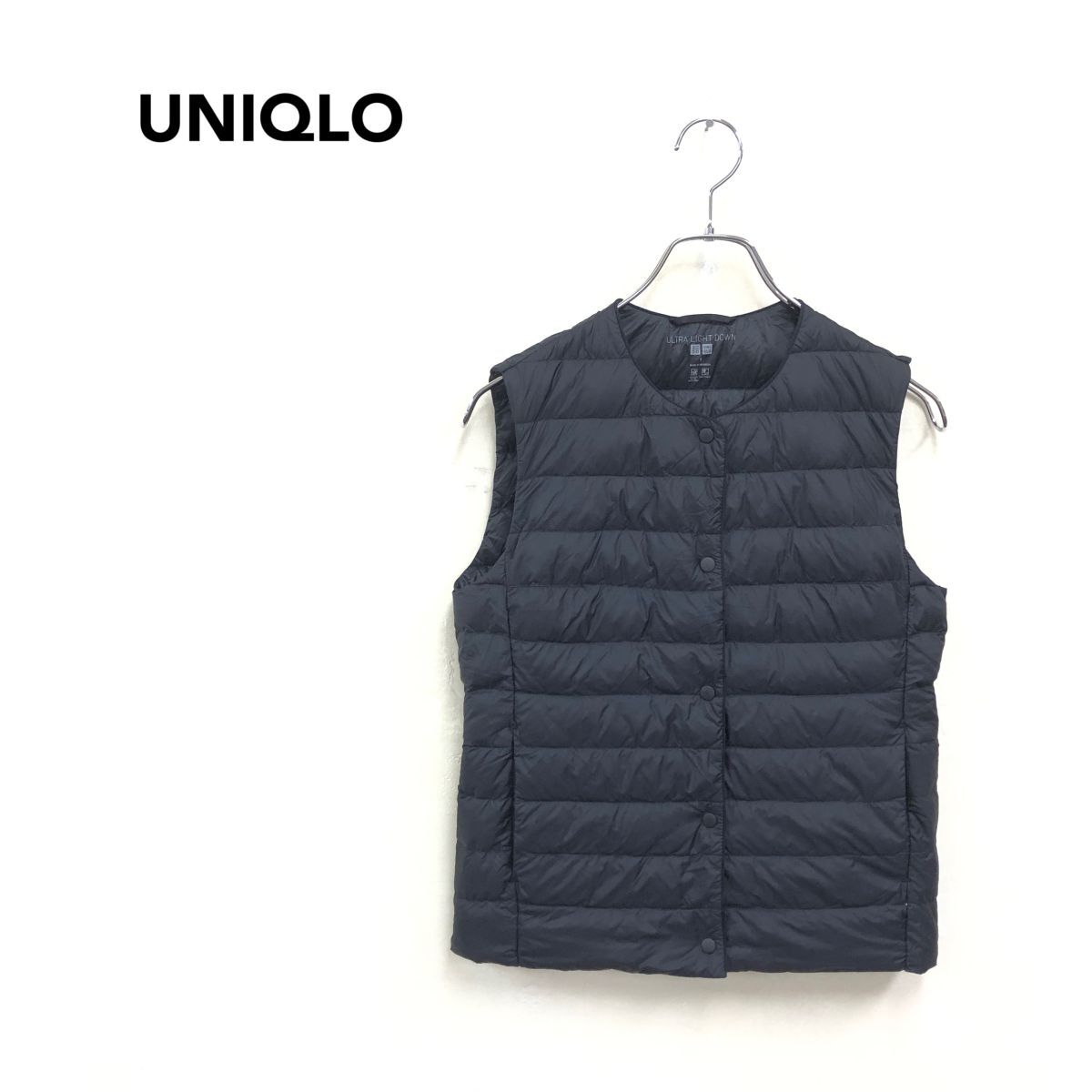 - 2K3337-K◆良品 UNIQLO ユニクロ ウルトラライトダウンベスト◆sizeS ブラック 薄手 軽量 ダウン90% インナーダウン ポーチ付 レディース
