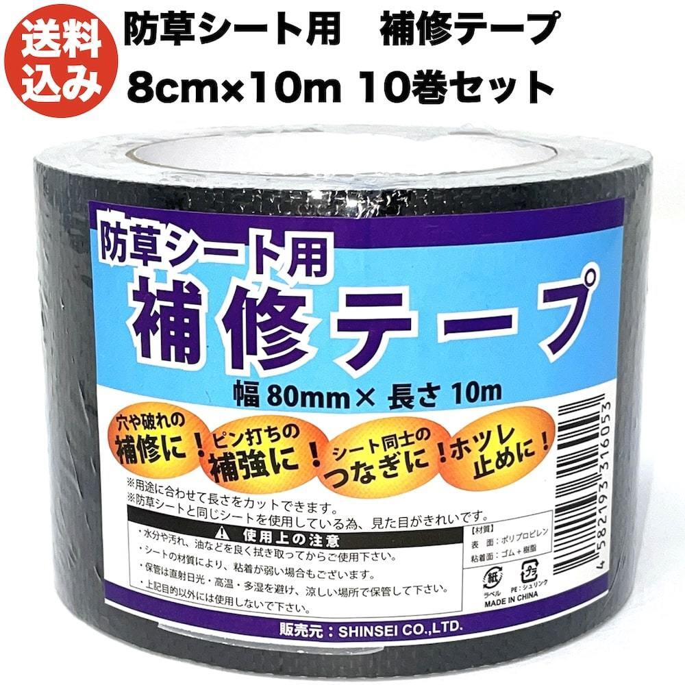 - シンセイ 防草シート用補修テープ 80mm×10m 10巻セット ピン穴修理 接続テープ 防草テープ 粘着テープ 除草シート