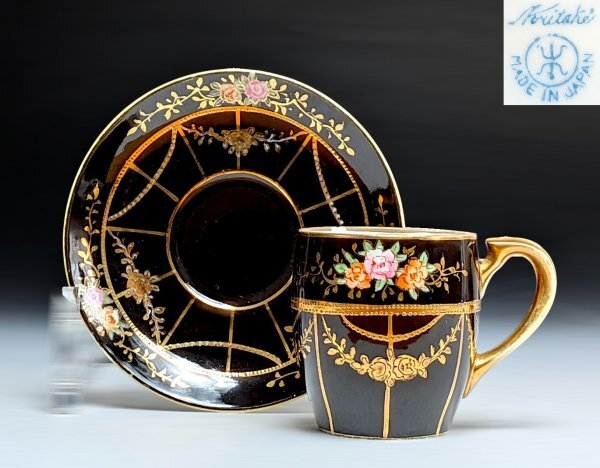 > 1906年~1925年頃 オールドノリタケ 金彩 薔薇図紋 カップ&ソーサー【2】 アンティーク ビンテージ 里帰り 明治 #601-2
