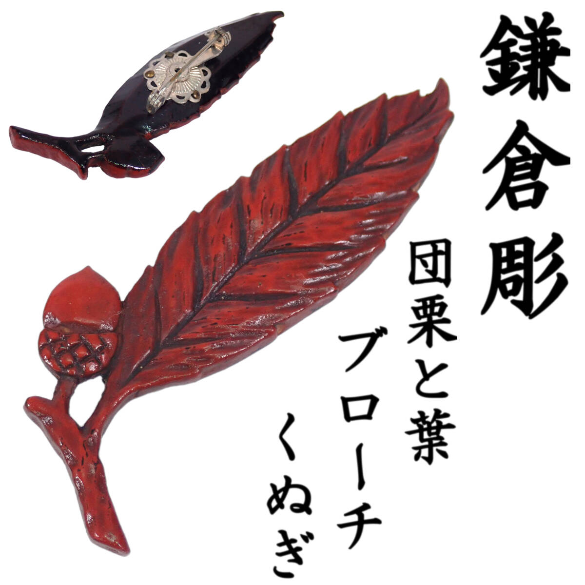 - 鎌倉彫 ブローチ 団栗と葉 くぬぎ 横7.2cm×縦2.8cm×厚0.6cm