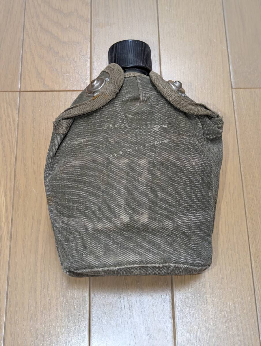 - 【中古】陸上自衛隊 旧型 アルミ水筒 ニギリ矢製 桜Qマーク入り 水筒覆1形 検】熊笹迷彩 旧迷彩 JGSDF 水筒カバー 昭和自衛隊