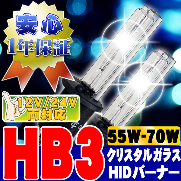 > HIDバーナー 55W-70W HB3 10000K 12V/24V 交換用左右セット UVカット加工 石英ガラス ヘッドライト/フォグランプ