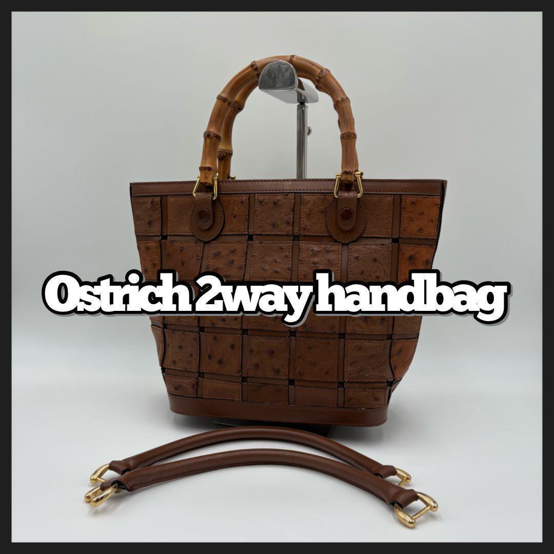 - Ostrich 2way handbag patchwork bamboo