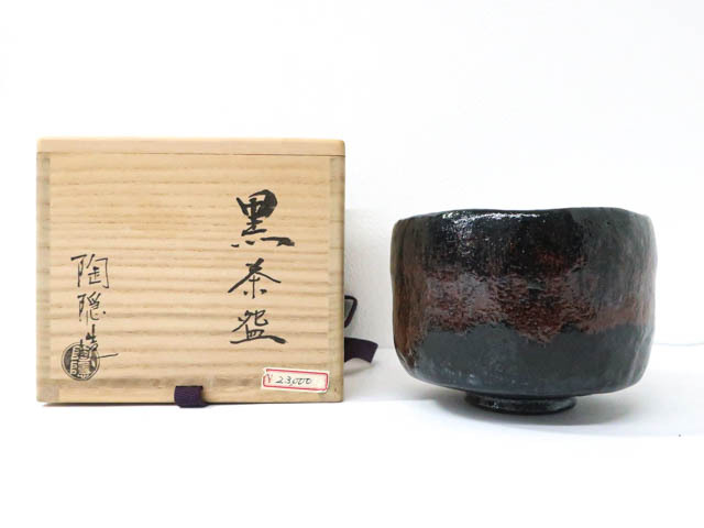 - 《古美術京松》【茶道具】 黒茶碗 陶隠造 共箱入り r7d10-16