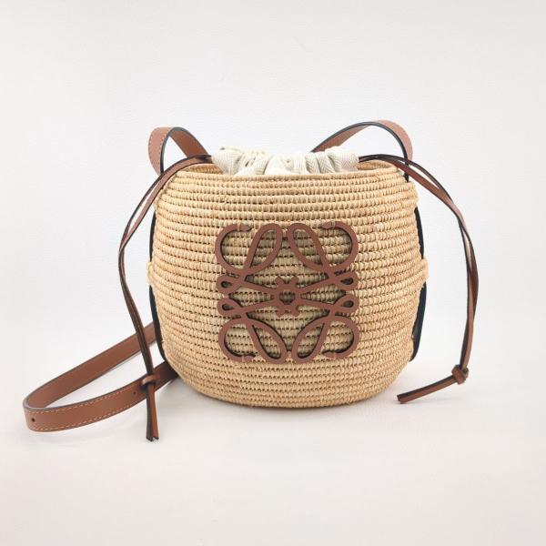 - 美品】ロエベ かごバッグ バスケット ショルダーバッグ ビーハイブ アナグラム ナチュラル×タン A223Z48X03 LOEWE ◆2005