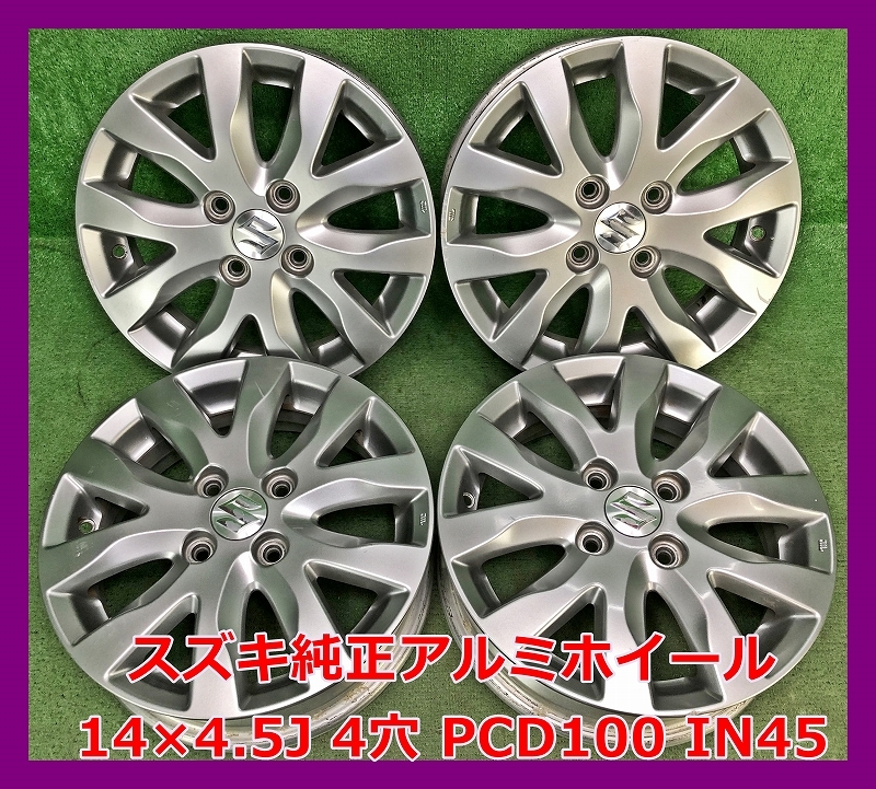 - ★14インチ スズキ 純正 中古 アルミホイール 4本 4穴 PCD100 IN45★