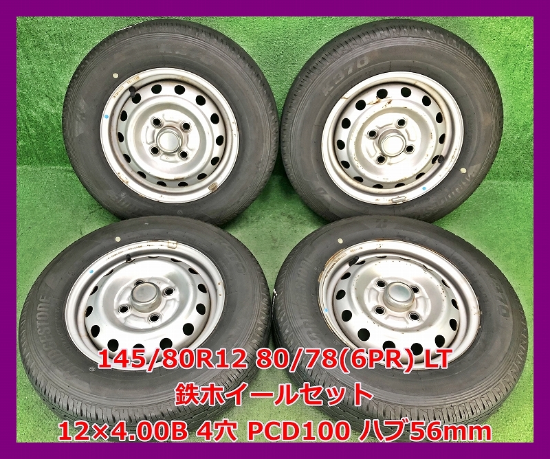 - 2023年製 145/80R12 80/78N(6PR) LT ブリヂストン K370 中古 夏タイヤ/ 中古 鉄ホイール付き 4本 4穴 PCD100 ハブ56mm